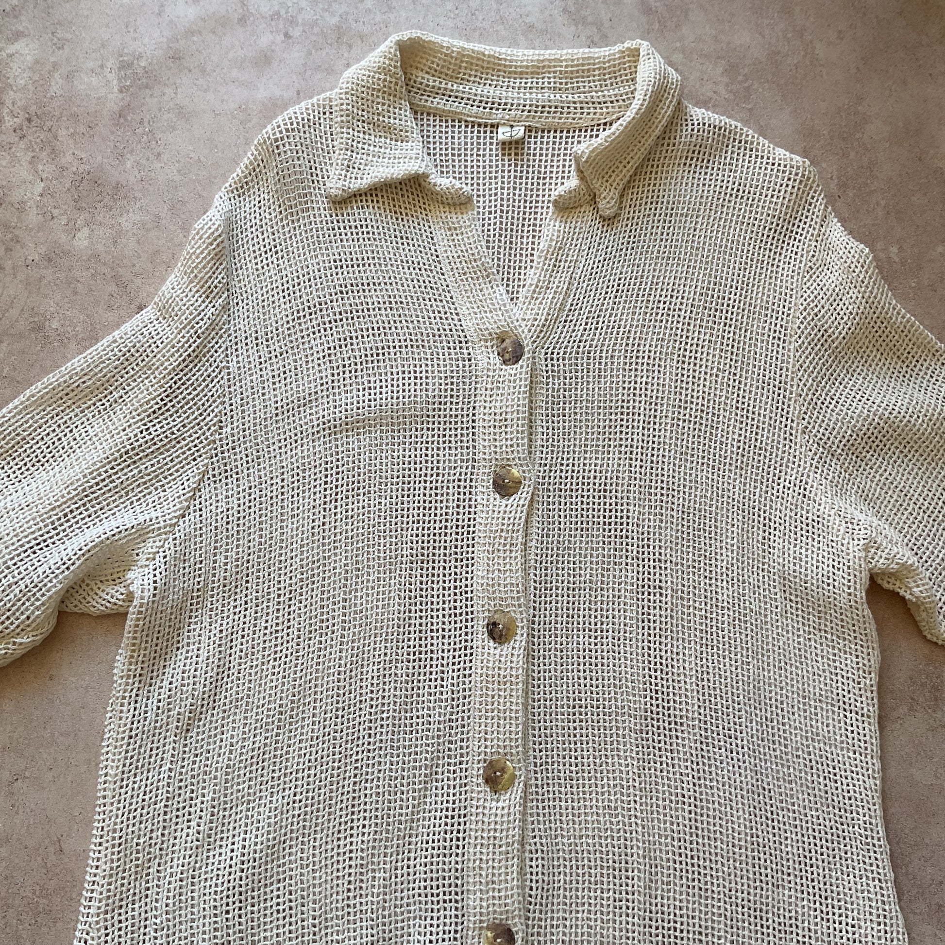 Cotton nightgown with natural shell buttons.